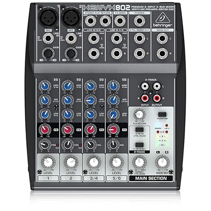 Amazon Com Behringer Xenyx 802 Premium 8 Input 2 Bus Mixer With Xenyx Mic Preamps And British Eqs Musical Instruments
